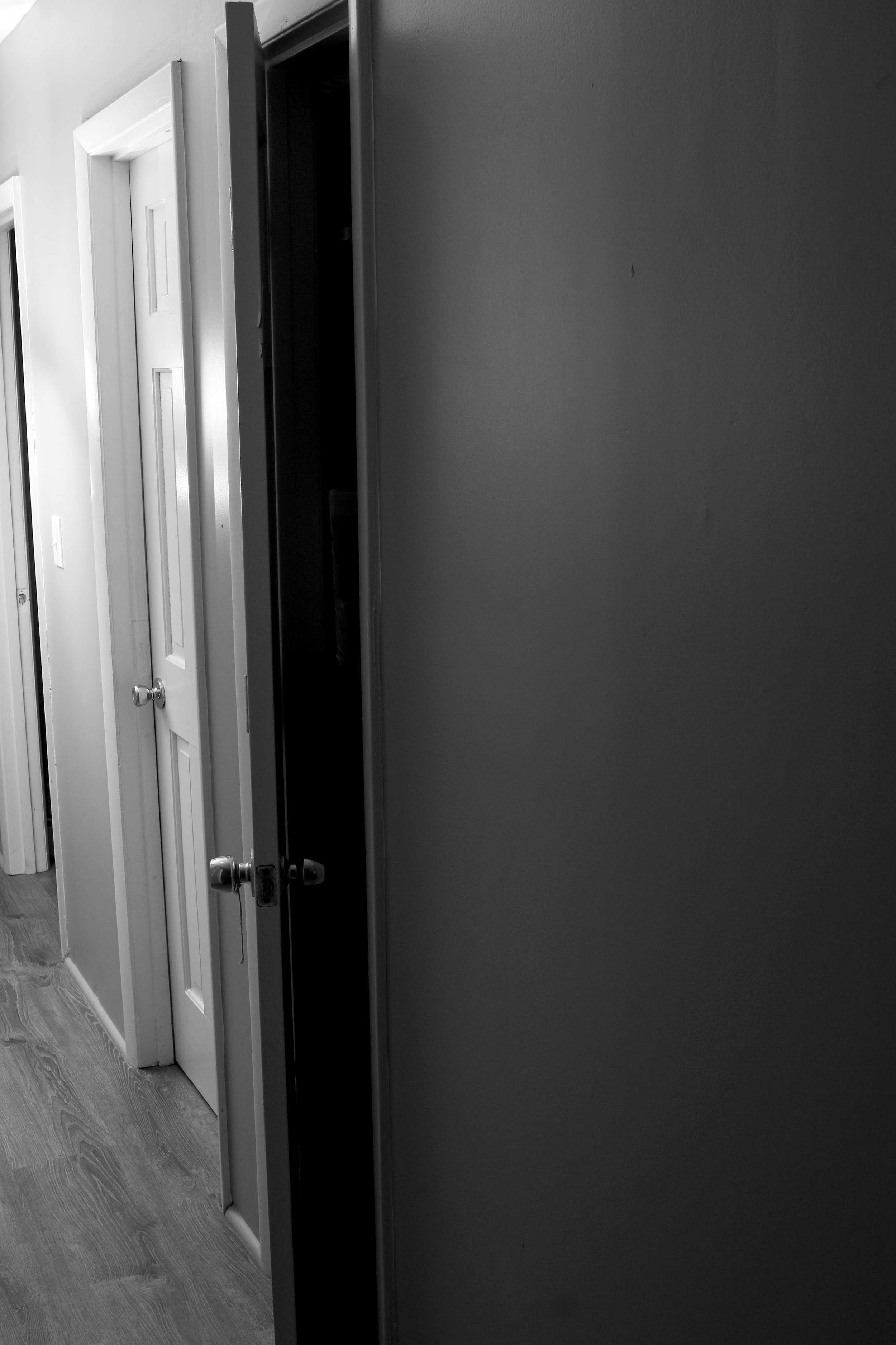 It hangs slightly off, not enough to demand repair, which makes me think the installer noticed and chose not to correct it, perhaps out of fatigue, or of indifference, or understanding that precision was no longer necessary when you’re someone who figures the world will settle itself out and a door is just a door.